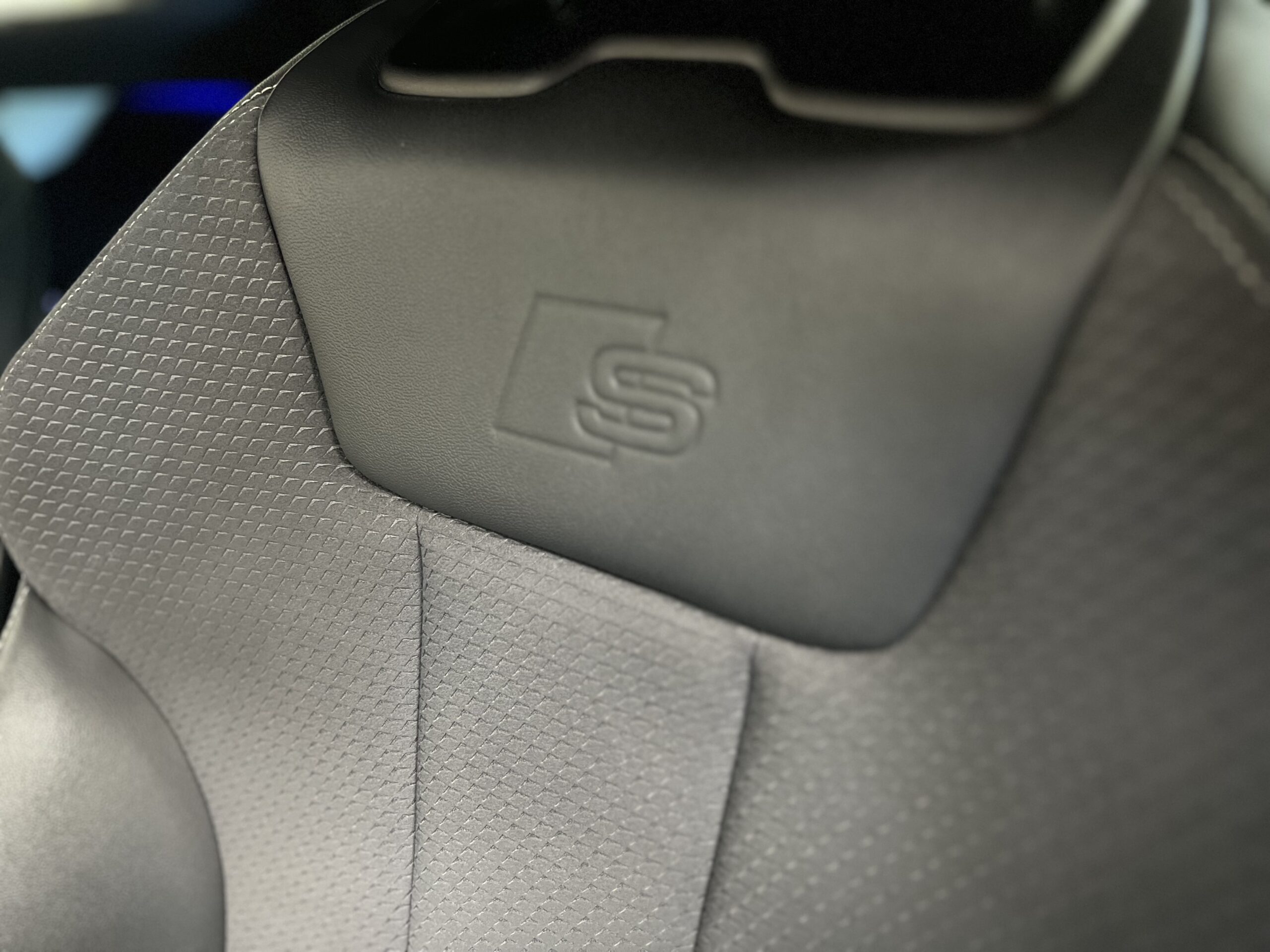 • Audi S-LINE Sportsitze mit Alcantara Sequenz/Leder mit Kontrastnähten und S-Prägung in den Vordersitzen
