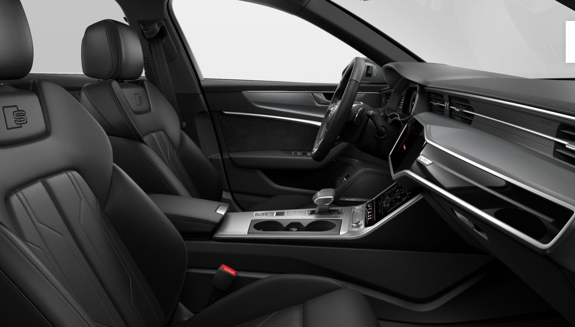 • Audi S-LINE Sportsitze in Leder Feinnappa mit Kontrastnähten und S-Prägung in den Vordersitzen • Sitze vorn elektr. verstellbar inkl. Memory